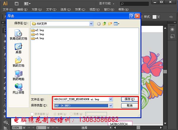 安装一个比较高版本的ILLUSTRATOR软件→打开PDF文件(如图1)→文件→导出(如图2)→出现文件保存对话框(如图3)→选择文件类型为bmp或者jpg格式→左击保存→出现栅格化选项(如图4)或JPEG(如图5)→确定→出现BMP选项→选择24位色(如图6)→确定→打开威尔克制版软件→图象→插入图形文件→选择已经导出的文件名→确定→完成(如图7)